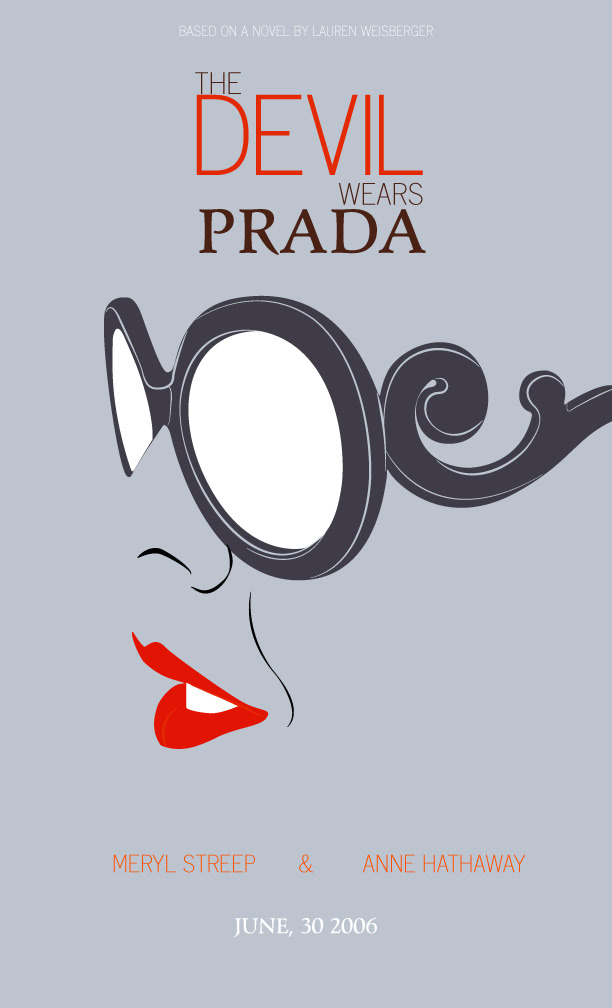 Poster I created in my free time for one of my favorite films. I illustrated actual Prada glasses for the character that's assumed to be Miranda Priestly to wear.